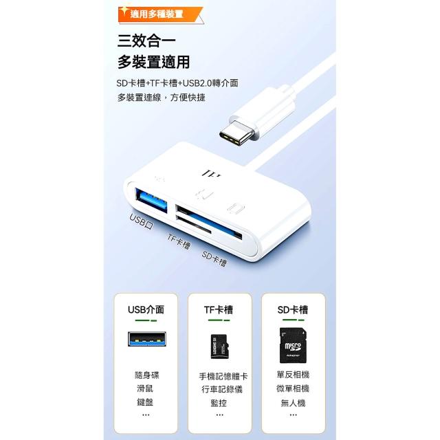 三合一讀卡器 otg多功能 type-c讀卡器 轉接TF卡SD相機卡 u盤手機 SD讀卡器 高速相機讀卡機