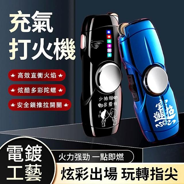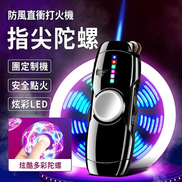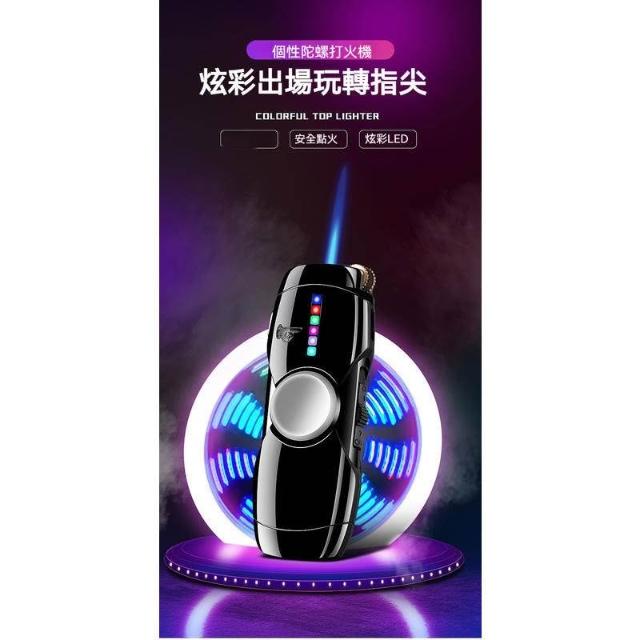創意防風打火機 LED彩燈指尖陀螺 充氣式直衝火機 旋轉趣味打火機 送禮潮玩必備 027打火機