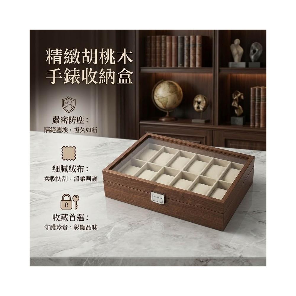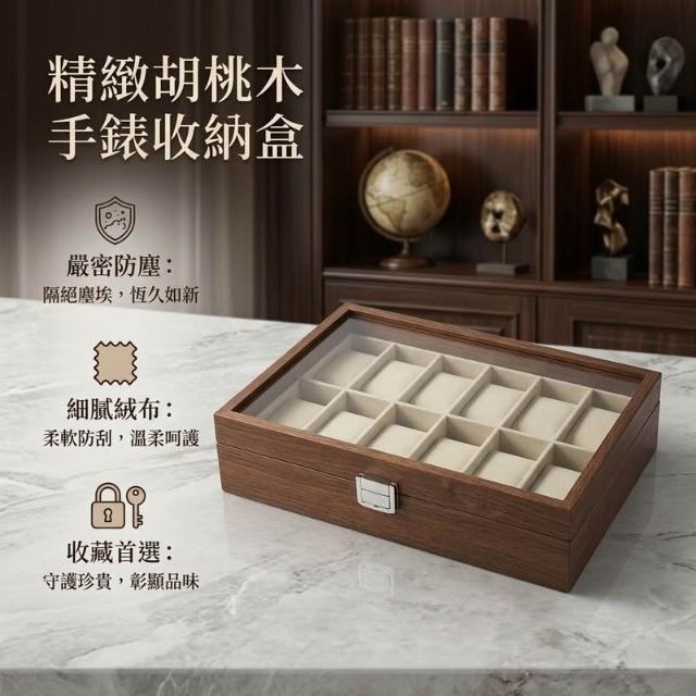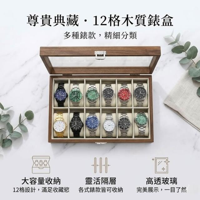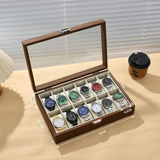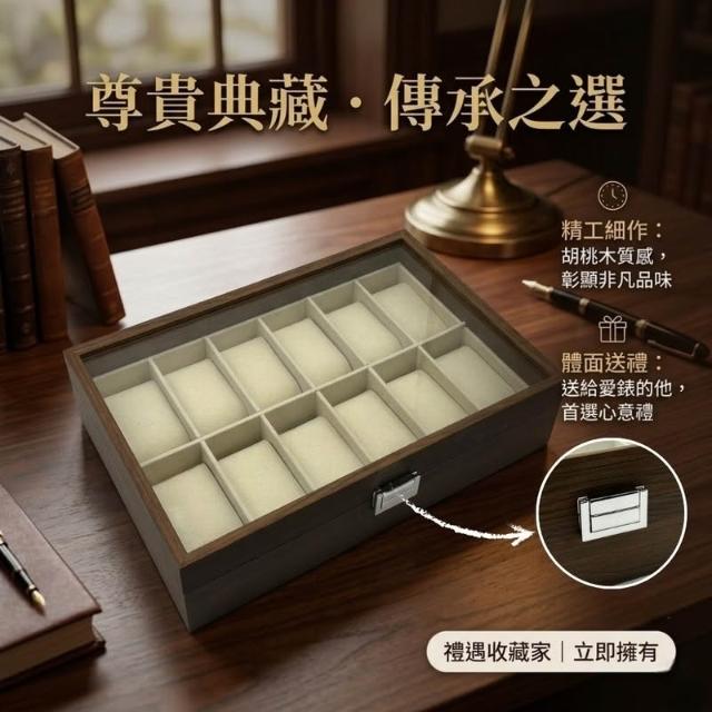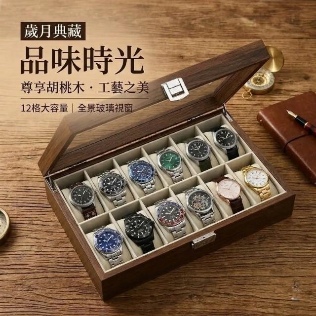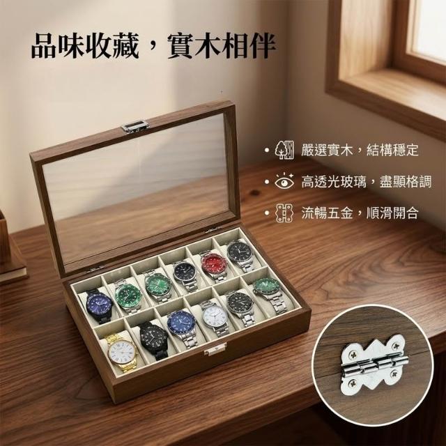 玻璃手錶收納盒 透明翻蓋實木展示盒 多格防塵腕錶收藏盒 桌面飾品整理盒 居家陳列送禮適用