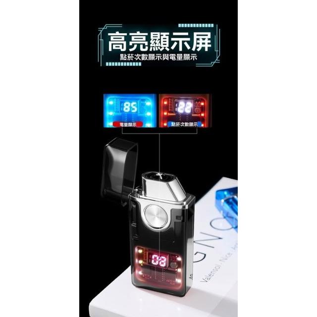 聲控雙電弧打火機 電子點火器 充電打火機 USB充電 透明顯電量 送禮禮盒包裝 076打火機