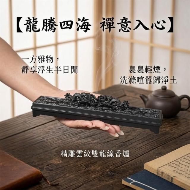 雙龍臥香爐 中式線香爐 禪意香道爐 鏤空防燙香爐 家用室內熏香爐 茶道香具擺件 佛堂供香配件