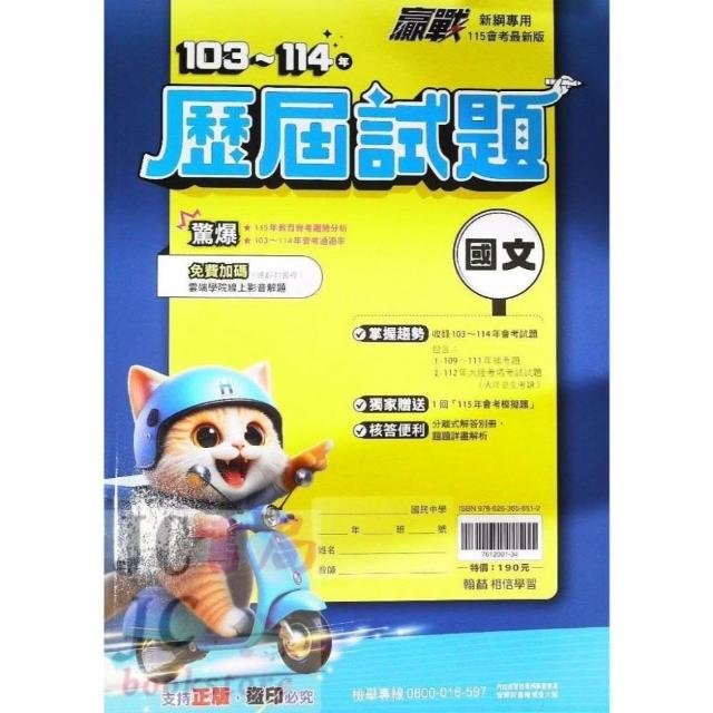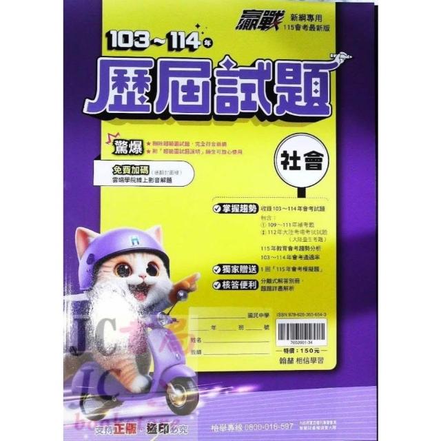 翰林國中 115年 贏戰會考 103-114年 歷屆試題 國文 數學 英文 英語 自然 理化 生物 地科社會