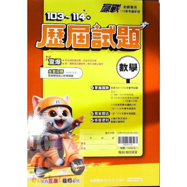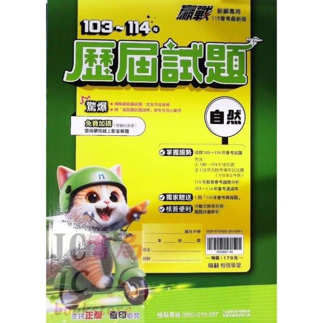 翰林國中 115年 贏戰會考 103-114年 歷屆試題 國文 數學 英文 英語 自然 理化 生物 地科社會