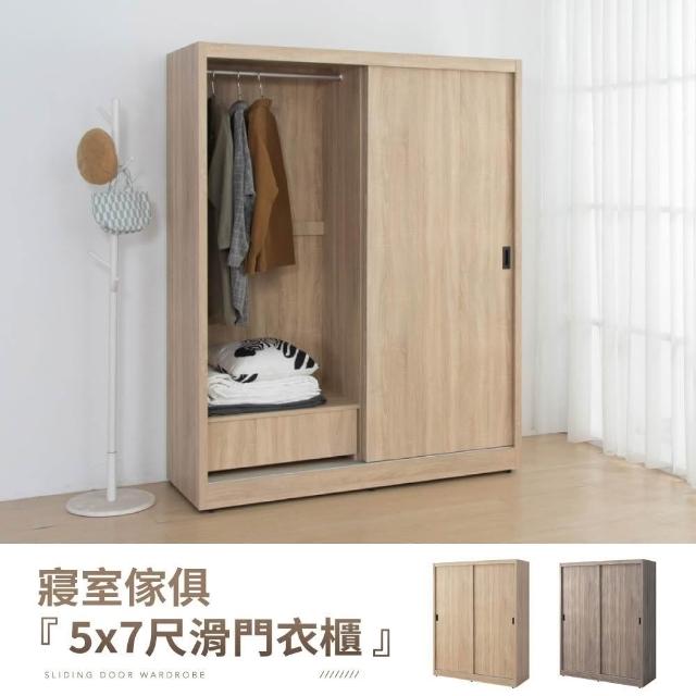 HOME+ MIT雙尺寸木心板滑門衣櫃/衣櫥+2色任選/免安裝