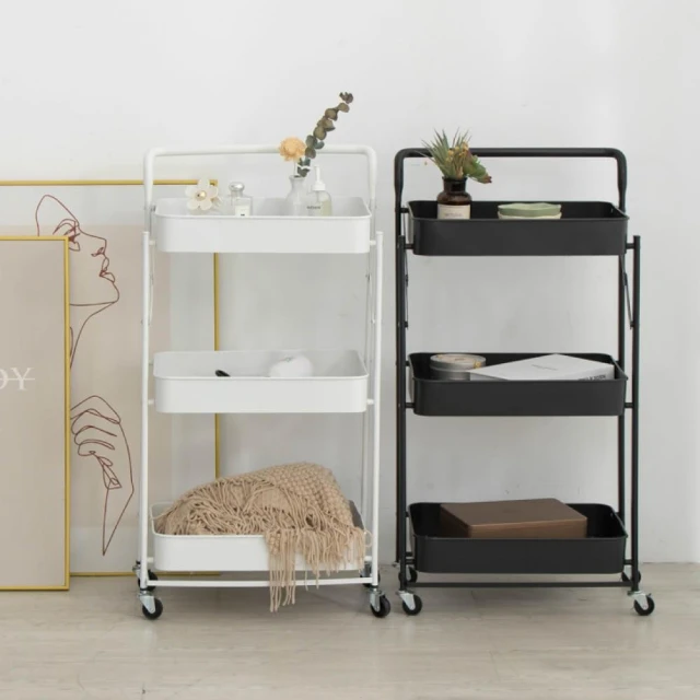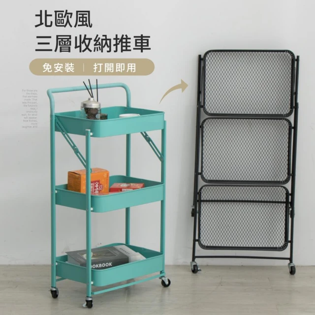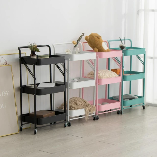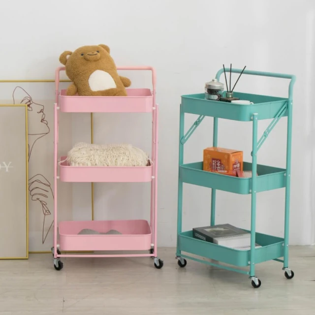 HOME+ 繽紛北歐風三層置物收納手推車/推車/置物架/收納籃車/置物推車(4色/免安裝即用)