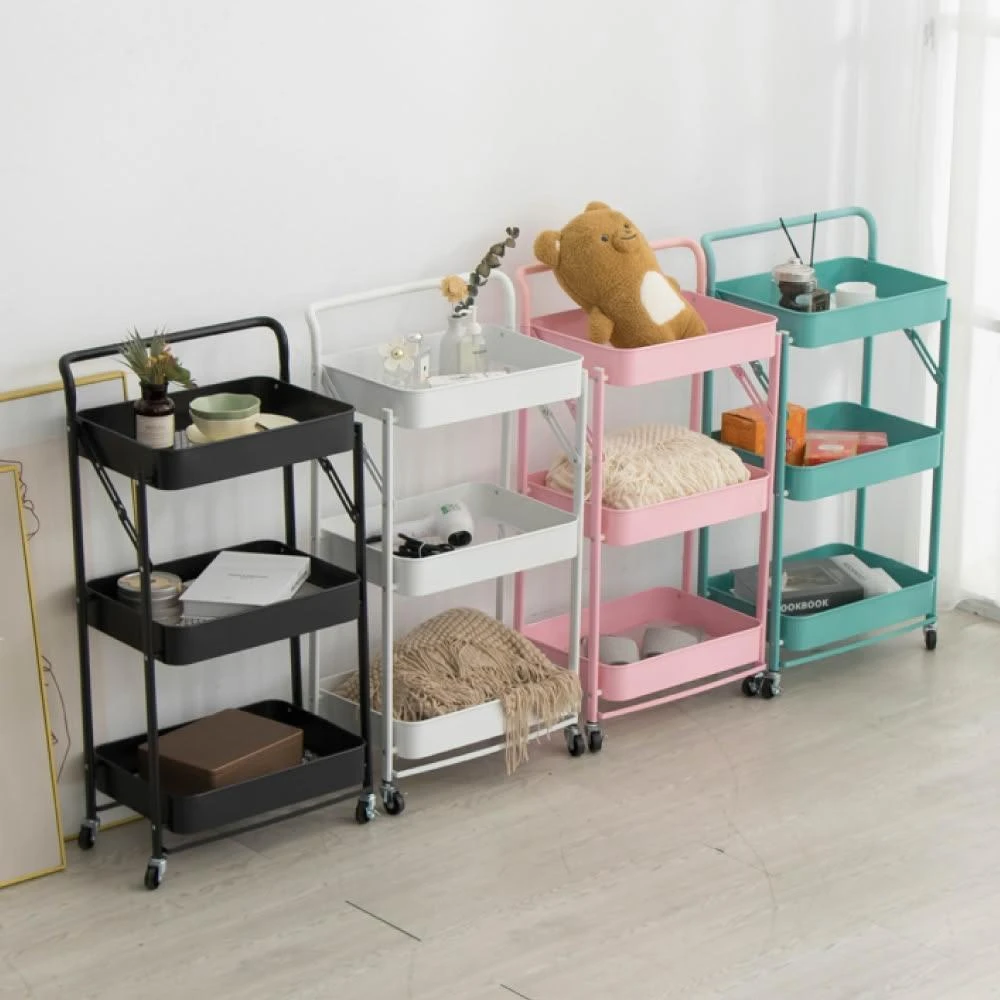 HOME+ 繽紛北歐風三層置物收納手推車/推車/置物架/收納籃車/置物推車(4色/免安裝即用)