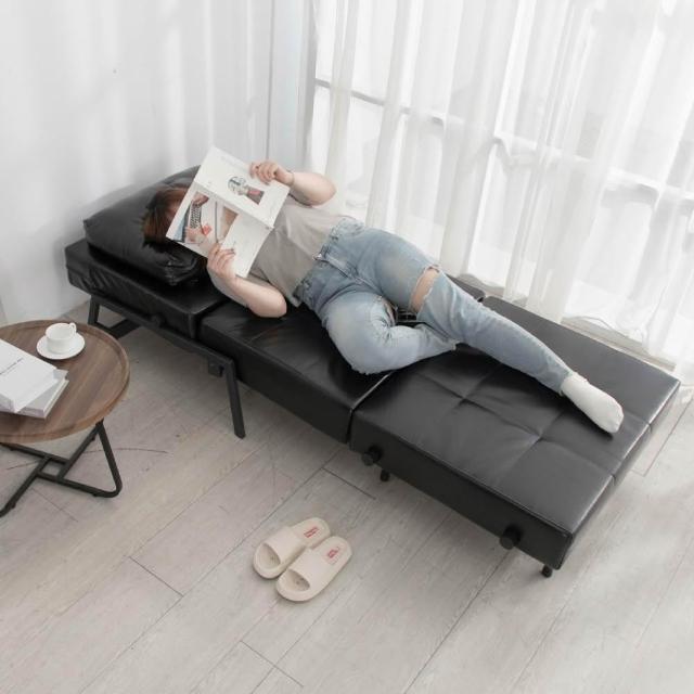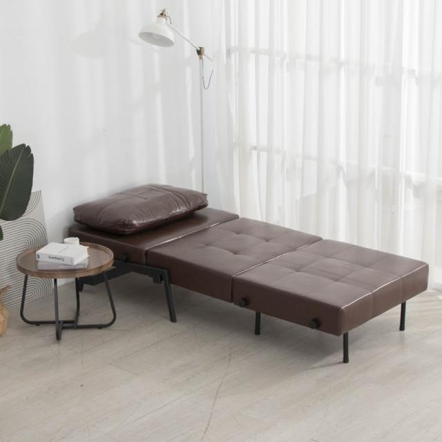 HOME+摩登方塊舒適厚實坐臥沙發床/皮沙發 單人沙發(2色任選)