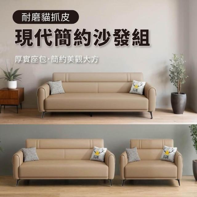 HOME+萊尼現代流暢貓抓皮沙發1+2+3人/皮沙發(3色任選)