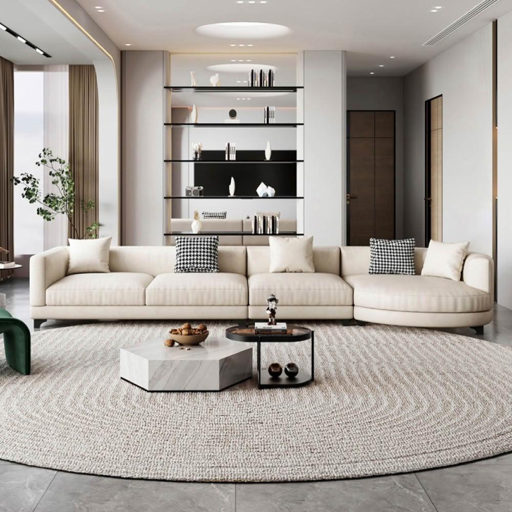 HOME+克羅奶油風柔彈厚實L型貴妃沙發椅/布沙發(加長350CM)