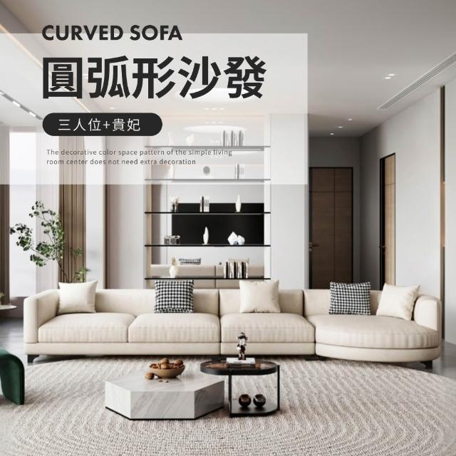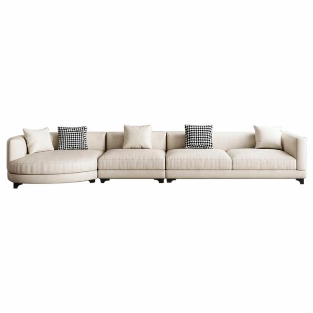 HOME+克羅奶油風柔彈厚實L型貴妃沙發椅/布沙發(加長350CM)