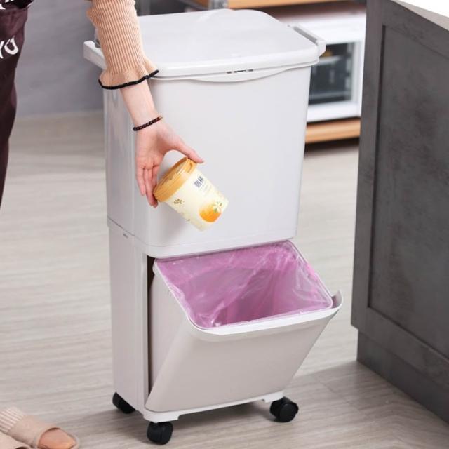 HOME+分類雙層分類移動式垃圾桶(41L)