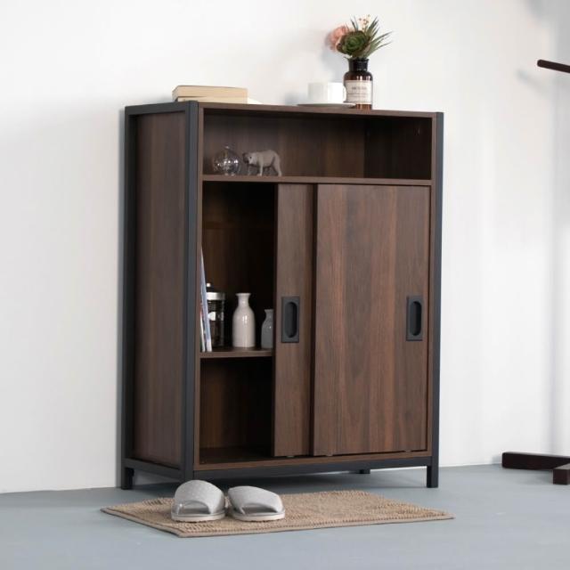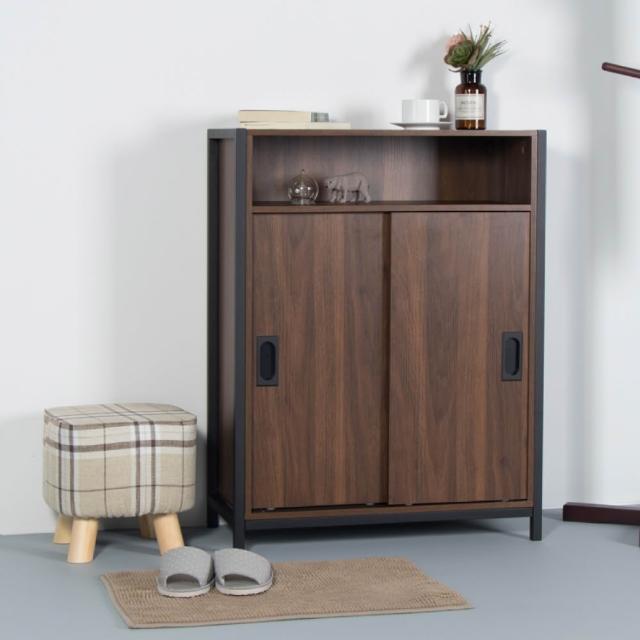 HOME+ 卡地鐵藝工業風滑門木質層櫃/玄關櫃 鞋架 收納櫃