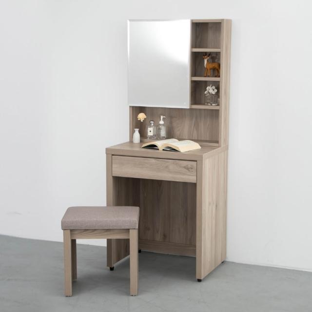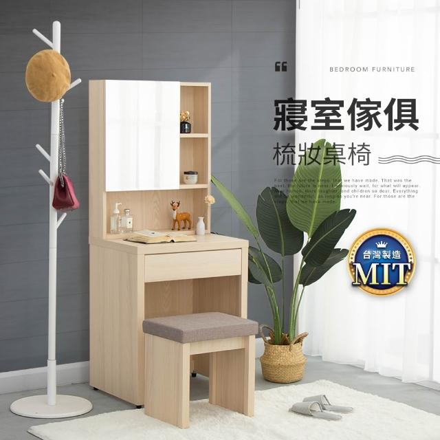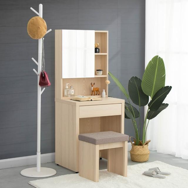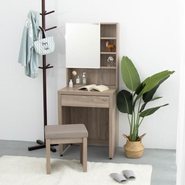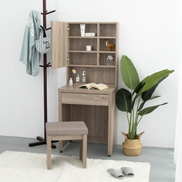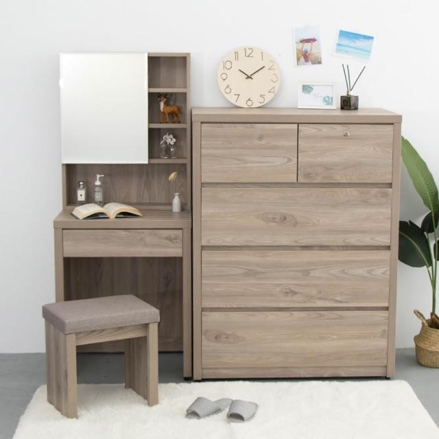 HOME+暖色木作多格抽屜梳妝台/化妝桌椅組(2色任選)