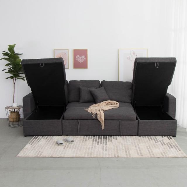 HOME+雙貴妃掀蓋式收納亞麻布L型貴妃沙發/布沙發