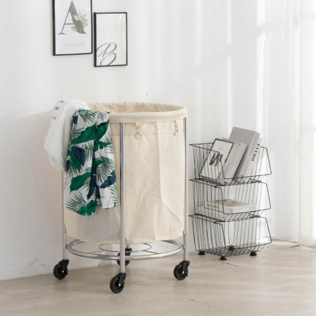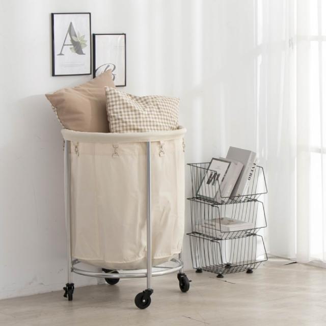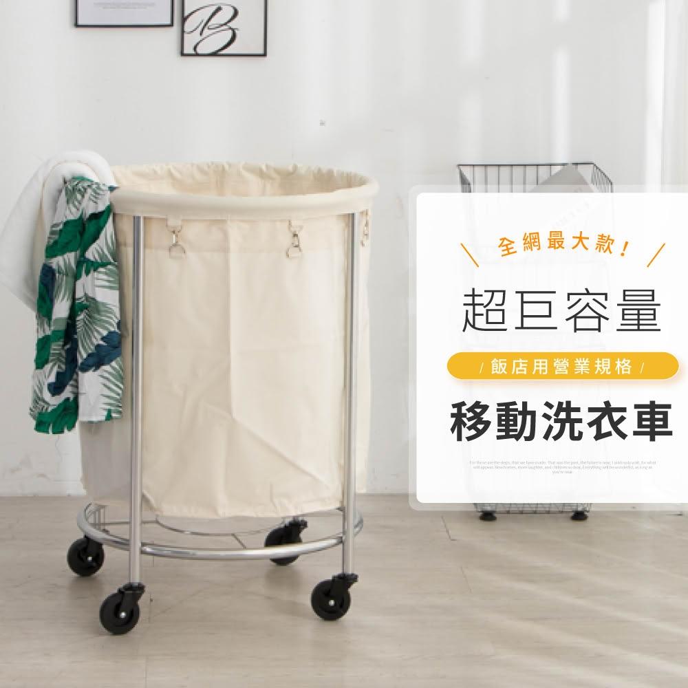 HOME+升級大容量防水移動帶輪置物收納髒衣車/洗衣籃(收納籃/推車)