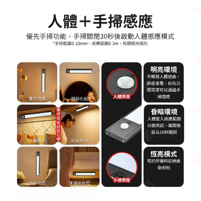 生活小集智慧長條三色感應燈 (小夜燈 自動燈 磁吸感應燈 櫥櫃燈 軌道燈 LED燈條 充電燈 人體感應)