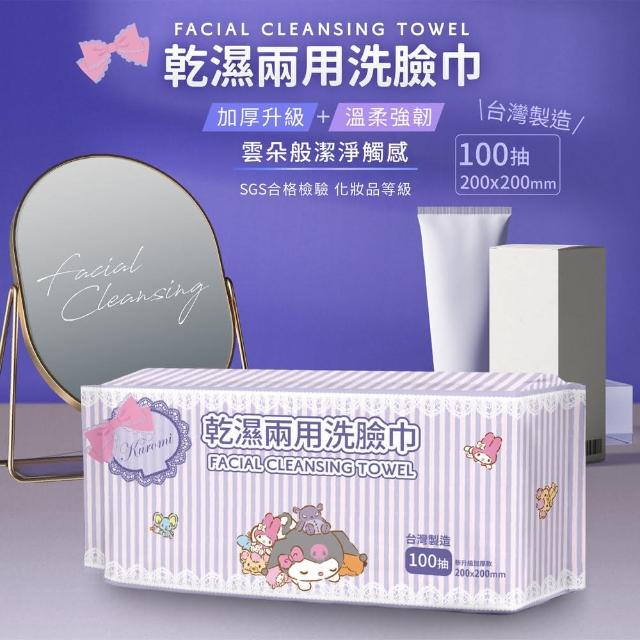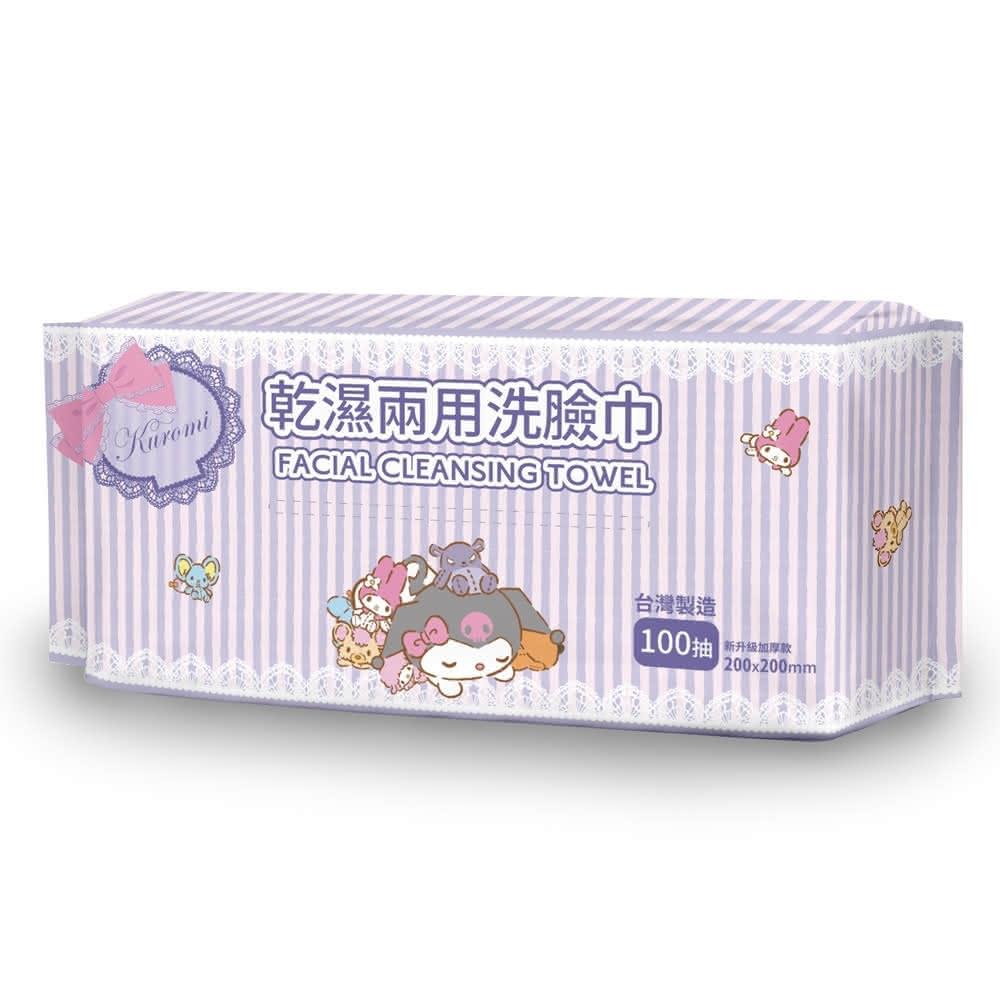 SANRIO 三麗鷗Kuromi酷洛米 條紋款-乾濕兩用洗臉巾加厚型 官方正版授權100抽 台灣製造