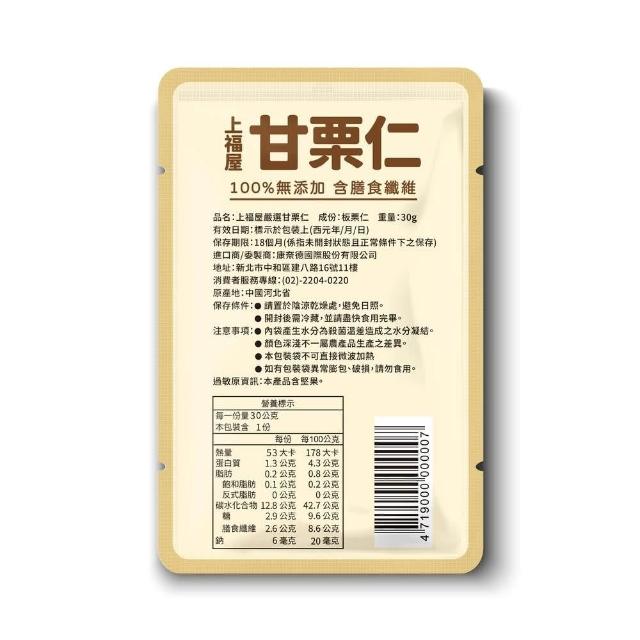 箱購-『上福屋』 嚴選甘栗仁(栗子)30g 10包/袋 x 12袋/組 -中國河北省製造(效期:2026/12/7)