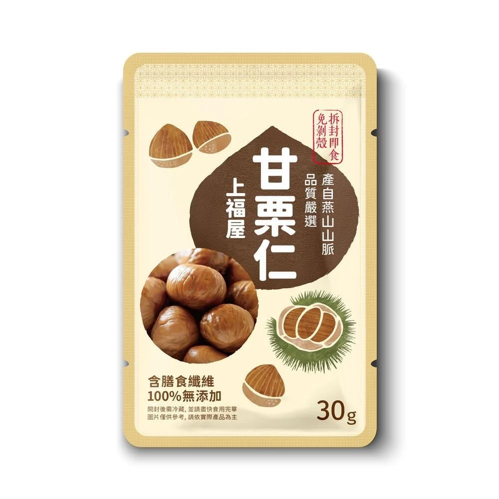 箱購-『上福屋』 嚴選甘栗仁(栗子)30g 10包/袋 x 12袋/組 -中國河北省製造(效期:2026/12/7)