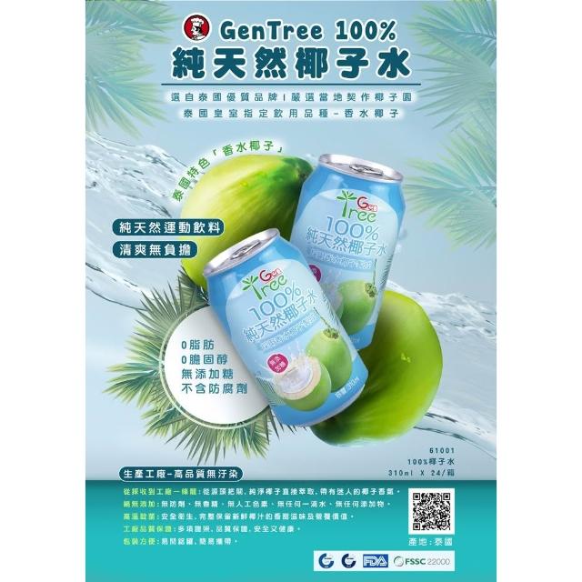 美味大師(箱購) 金樹100%椰子水310ml x 24瓶/箱