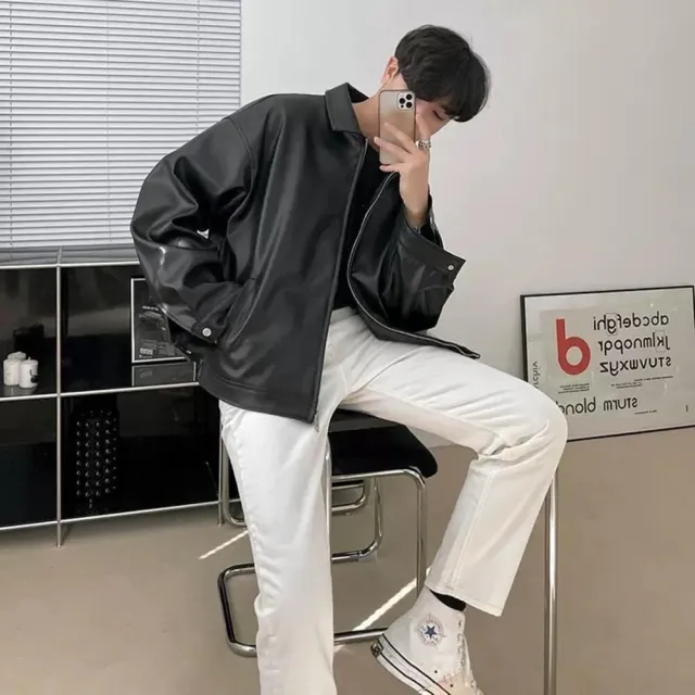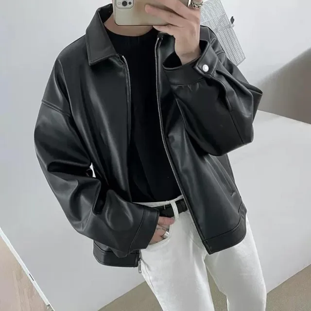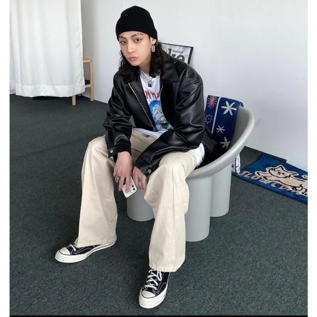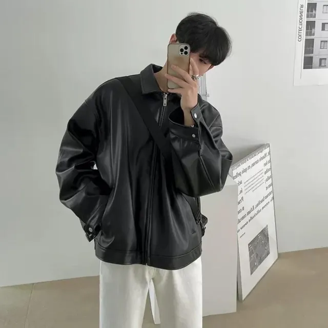 B.Y 素面黑魂 穿搭 Y2K(皮外套 皮衣 皮衣外套 肩 寬鬆 皮革 外套 騎士 情侶 K2 夜店)