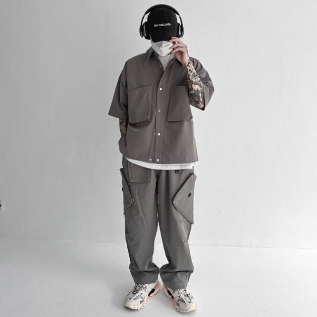 重磅 機能 工作襯衫(工裝襯衫 金屬釦 側開岔 口袋 襯衫 短袖襯衫 口袋襯衫)