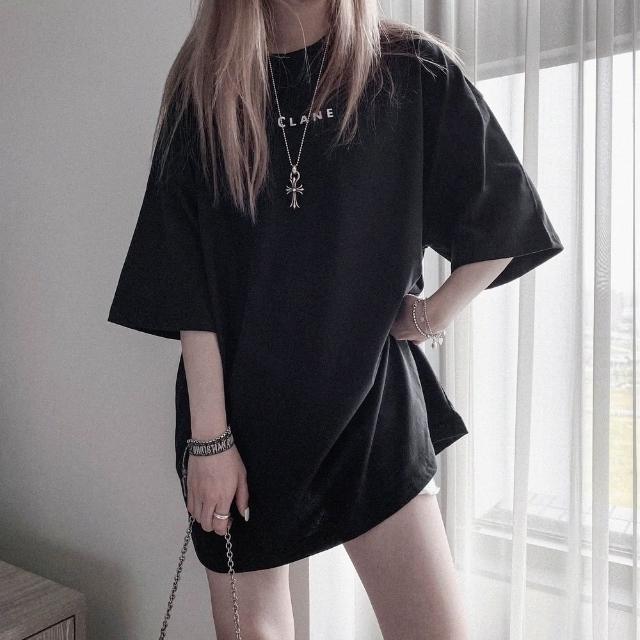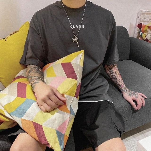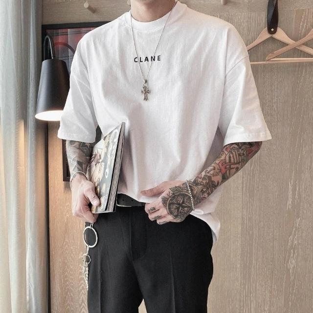 CLANE 簡約 英文 TEE 五分袖 短袖T桖(短袖 T桖 上衣 情侶T OVERSIZE 五分袖)