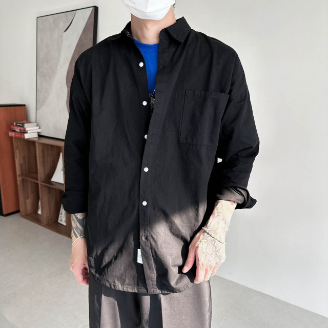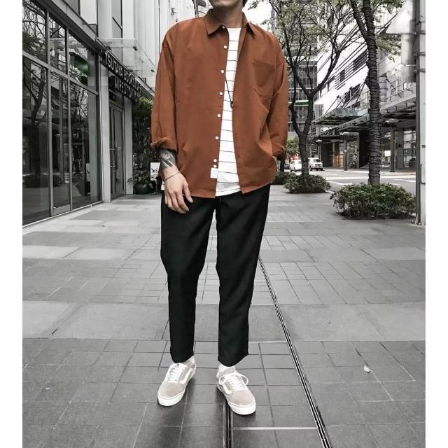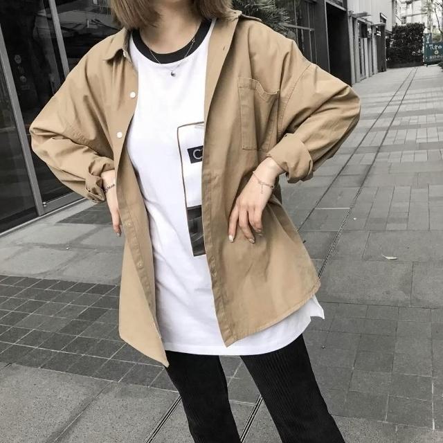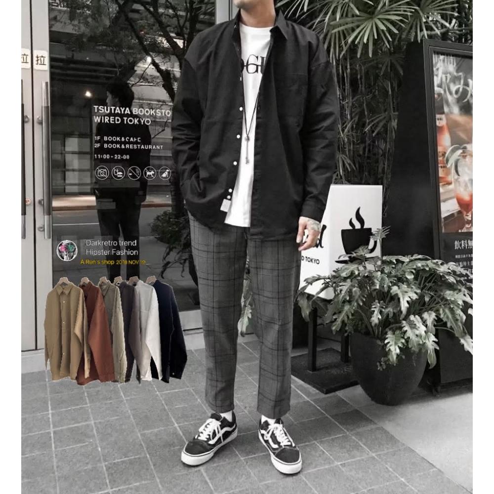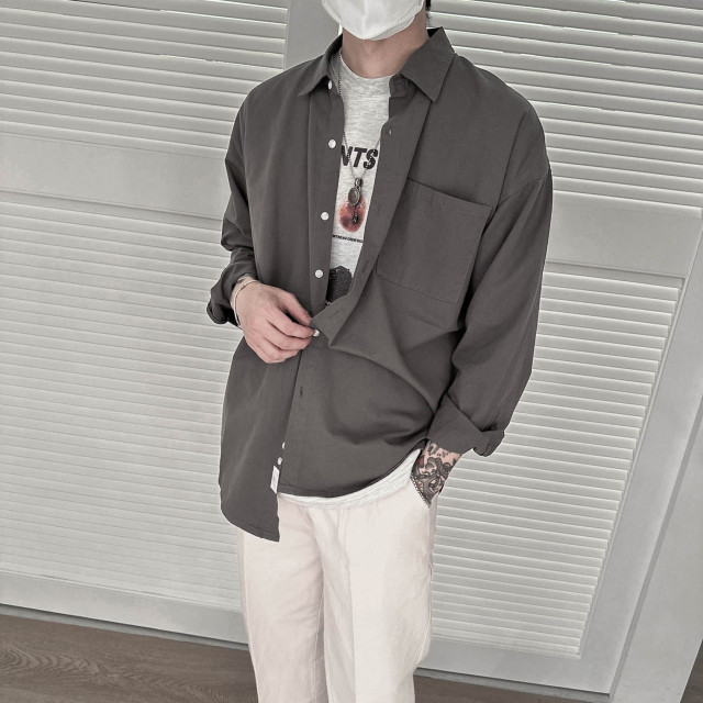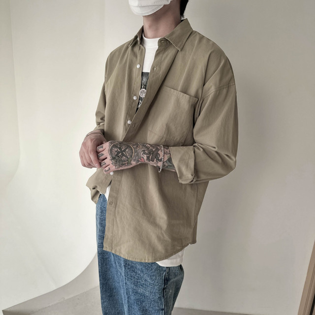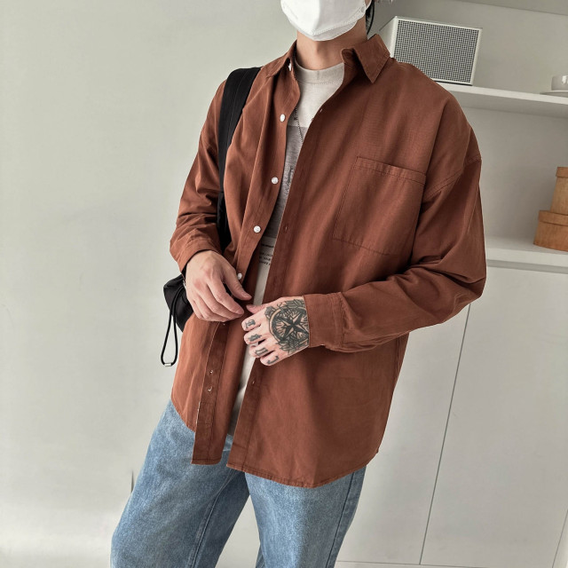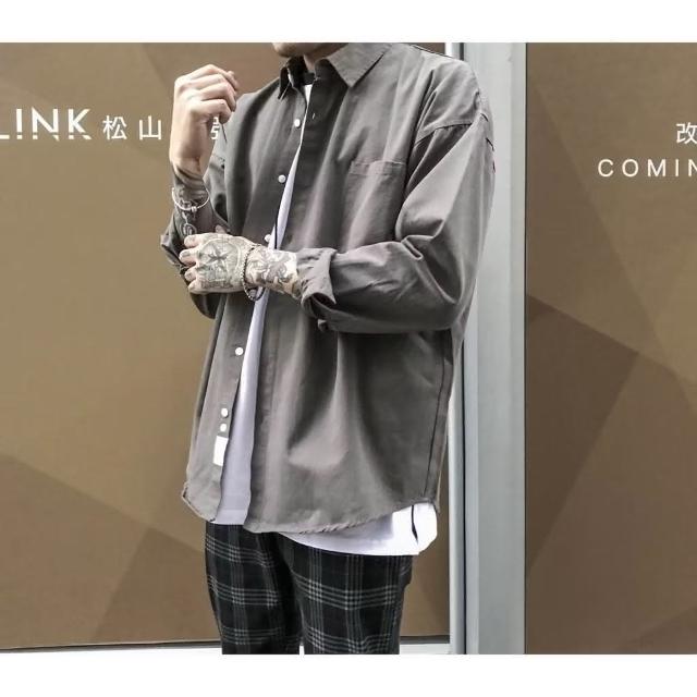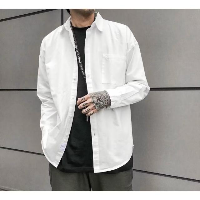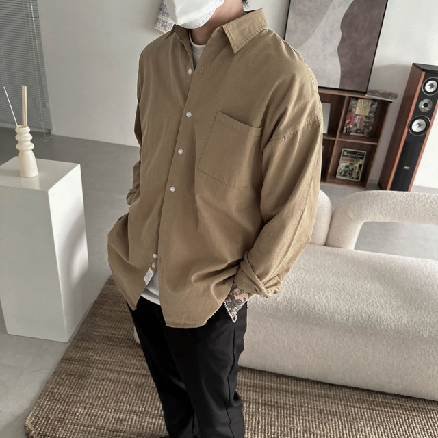 韓國 六色 文青質感 口袋 長袖襯衫 男女同款 襯衫男生 襯衫 寬鬆 落肩