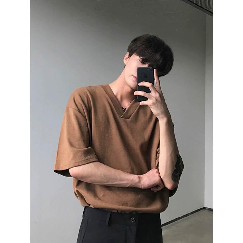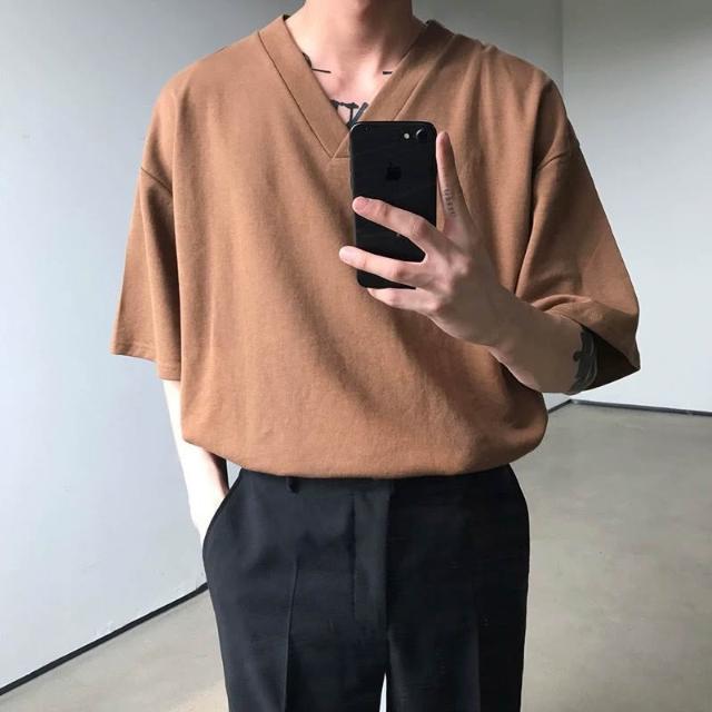 B.Y精緻韓風 素面V領 寬鬆 短袖上衣 簡約氣場百搭款
