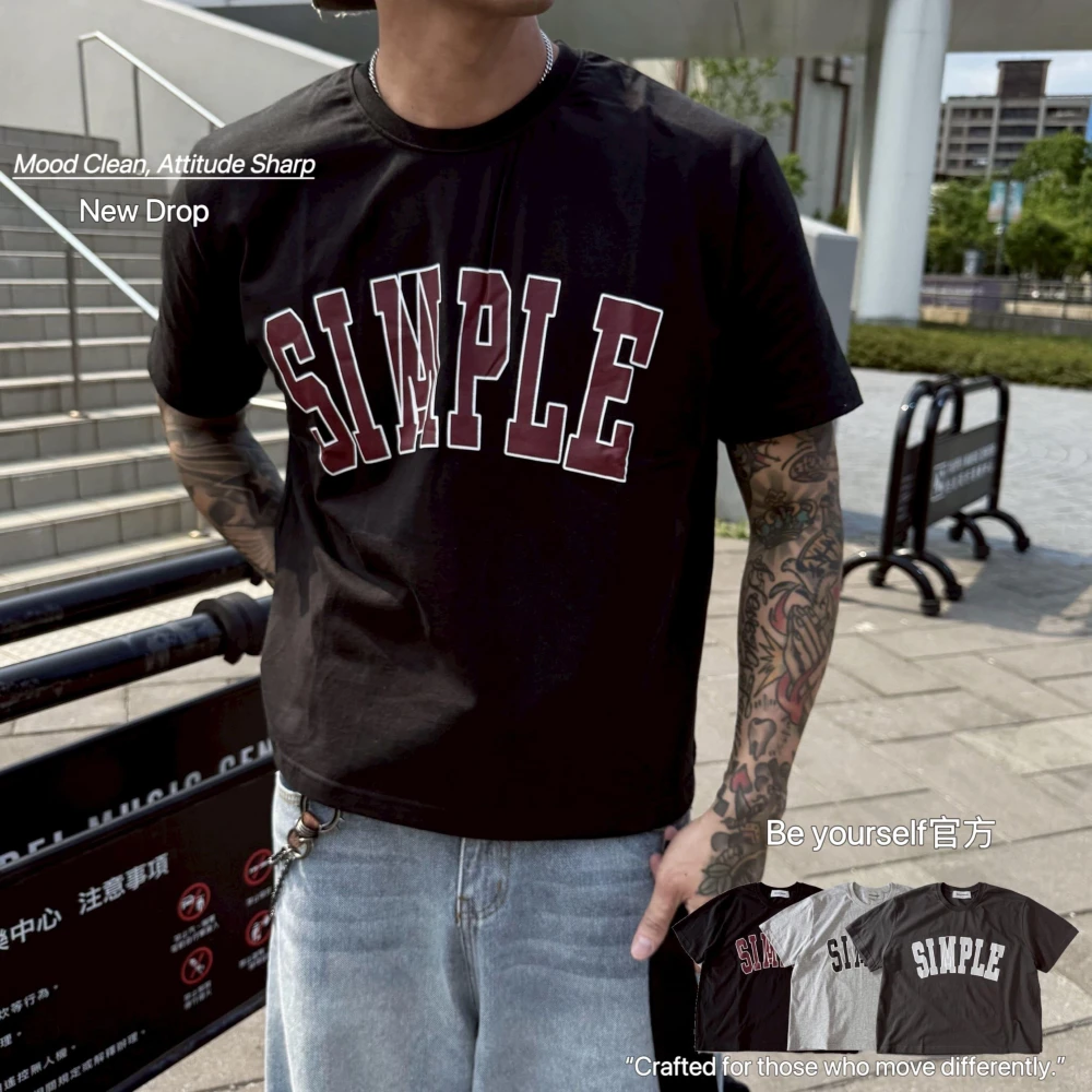 B.Y 美式簡約字母短T SIMPLE印花寬版短袖上衣 街頭男女可穿