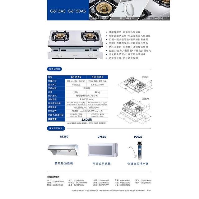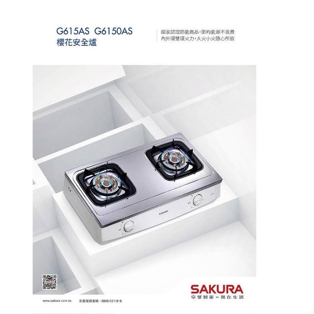 SAKURA櫻花 瓦斯爐 二口 安全爐 G615A 台爐 不鏽鋼 二口爐 (全國安裝)
