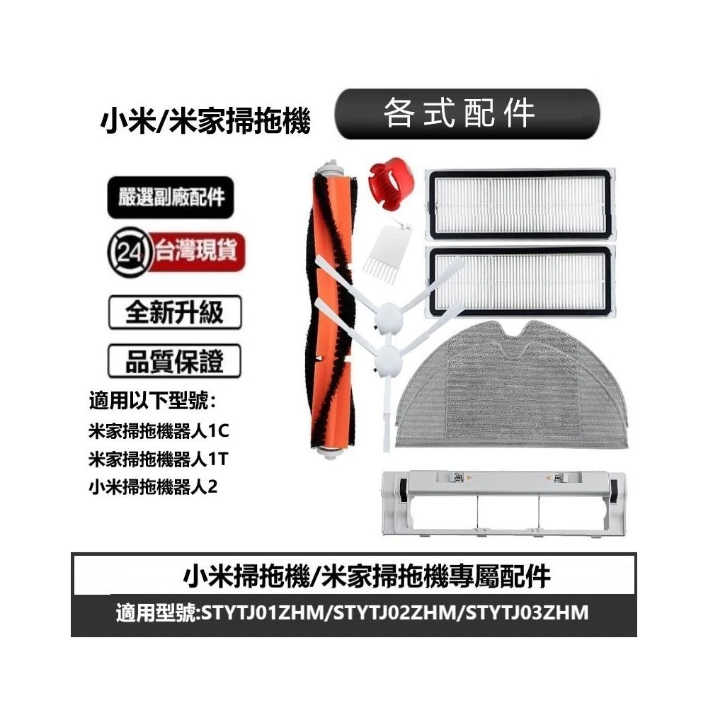 適用小米 2 耗材 配件 米家掃拖機1C/1T 主刷 邊刷 濾網 萬向輪 主刷罩 抹布副廠配件
