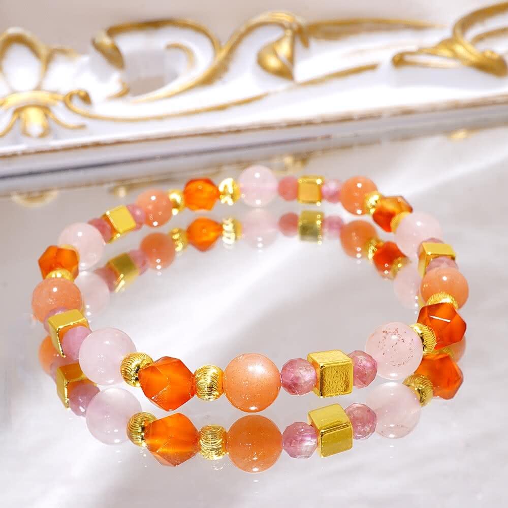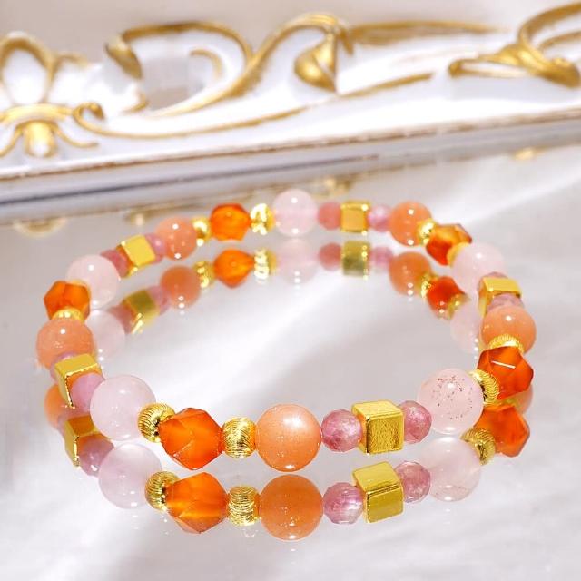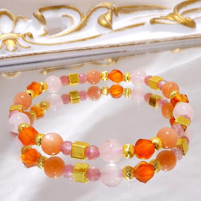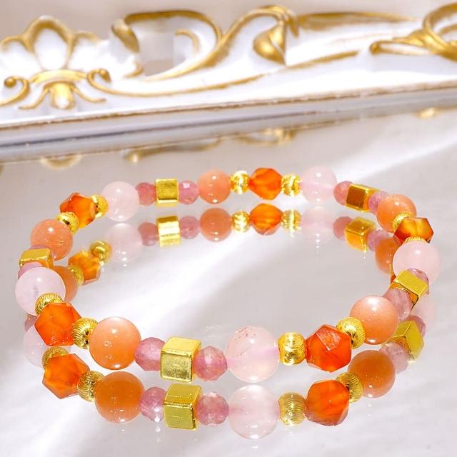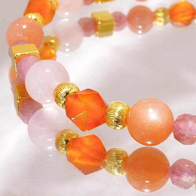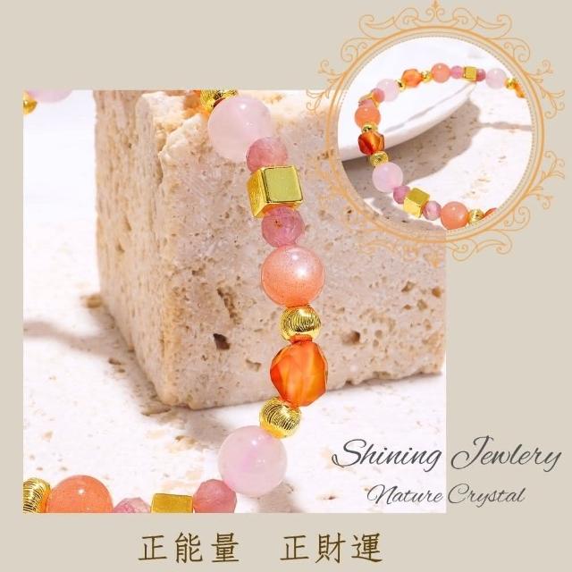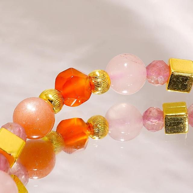 Miss擁抱陽光/太陽石 紅瑪瑙 粉晶 紅碧璽/天然水晶手鍊/陽光是生活的禮物