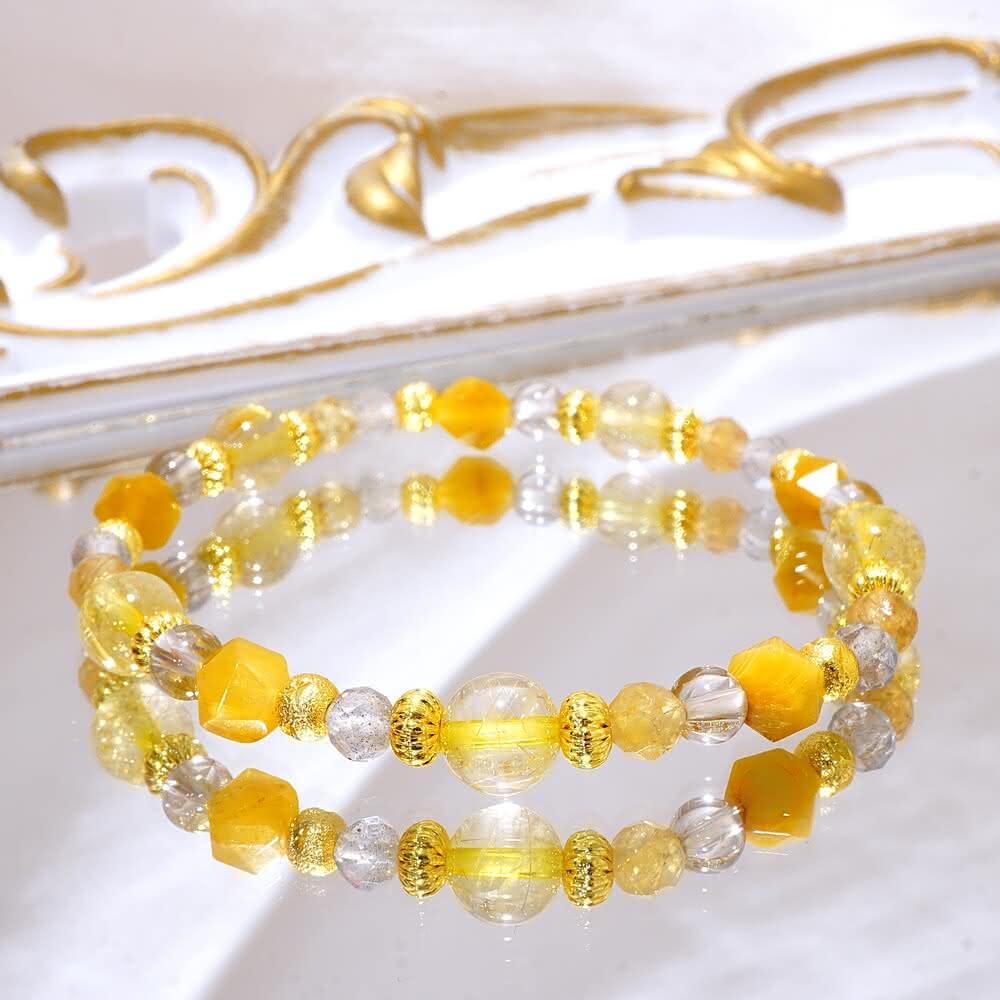 Miss閃耀星芒/黃水晶 金黃虎眼石 白水晶 黃鋰輝石 灰月光/天然水晶手鍊/閃亮的明珠