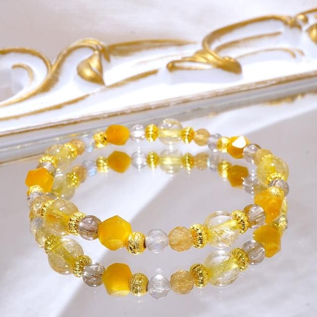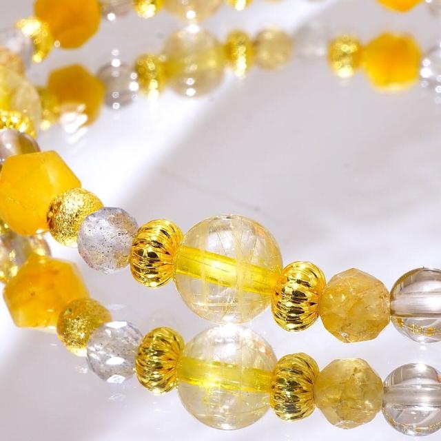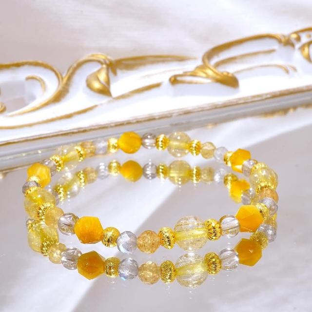 Miss閃耀星芒/黃水晶 金黃虎眼石 白水晶 黃鋰輝石 灰月光/天然水晶手鍊/閃亮的明珠
