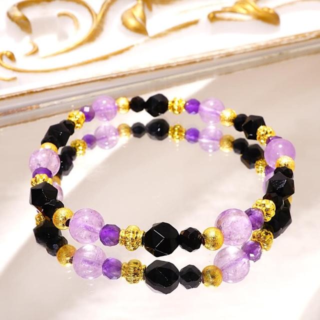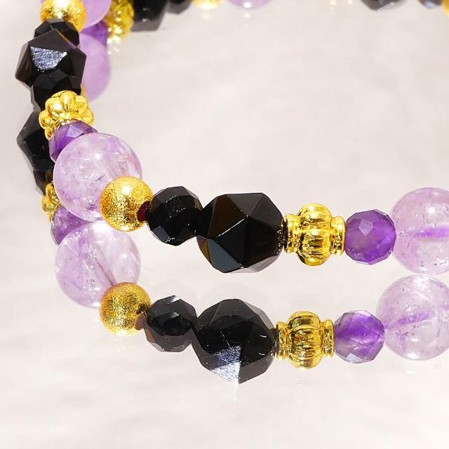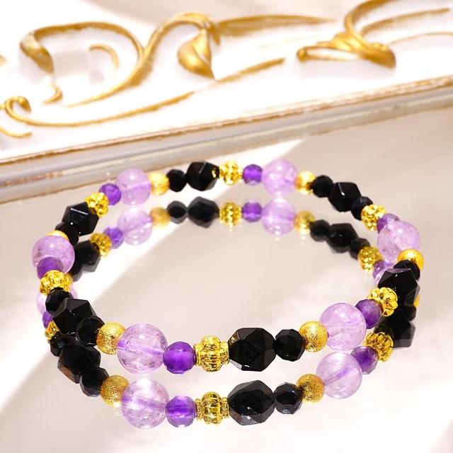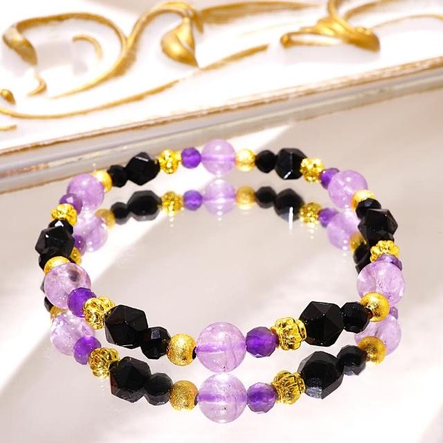 Miss黑色的魅惑/薰衣草紫水晶 紫水晶 黑瑪瑙 黑尖晶/天然水晶手鍊/綻放心靈深處