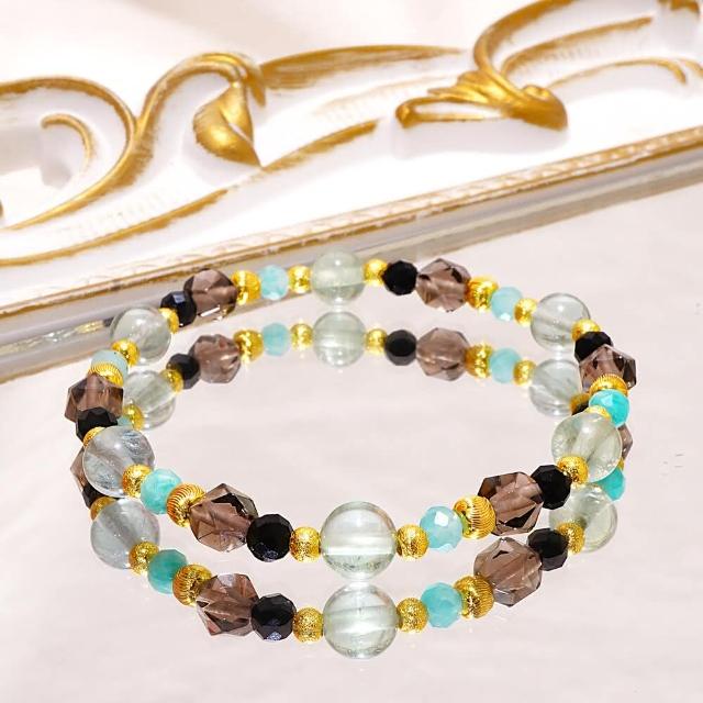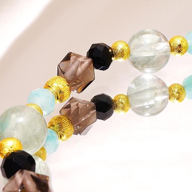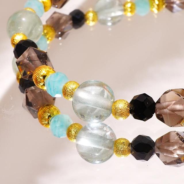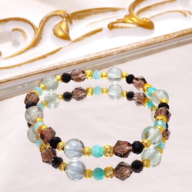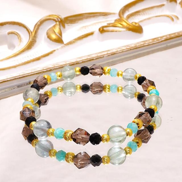 Miss大地之歌/綠螢石 冰曜石 天河石 黑尖晶/天然水晶手鍊/生命的旋律