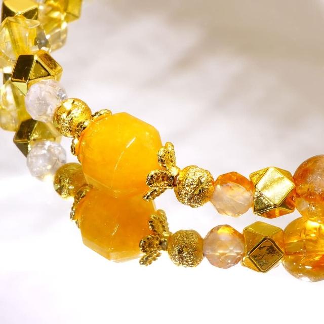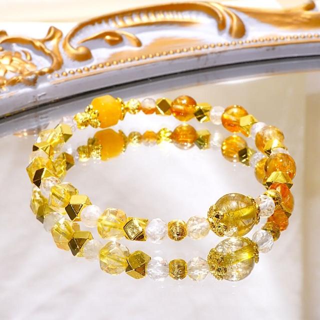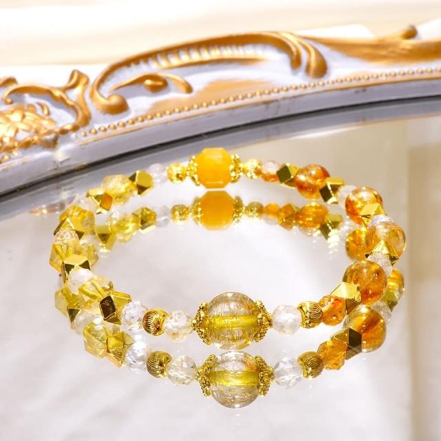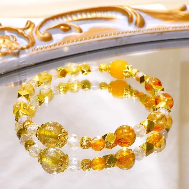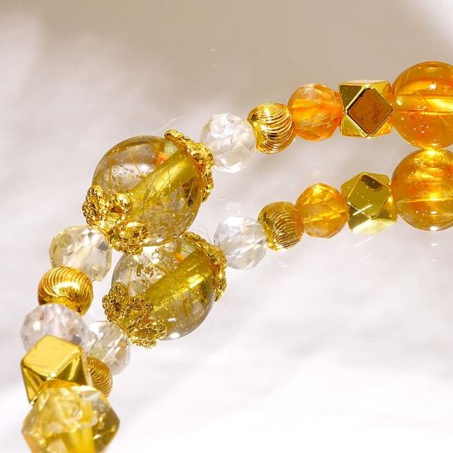 Miss永久花的永恆記憶/金髮晶 黃玉 黃水晶 黃塔晶 月光石/天然水晶手鍊/她堅韌又美麗