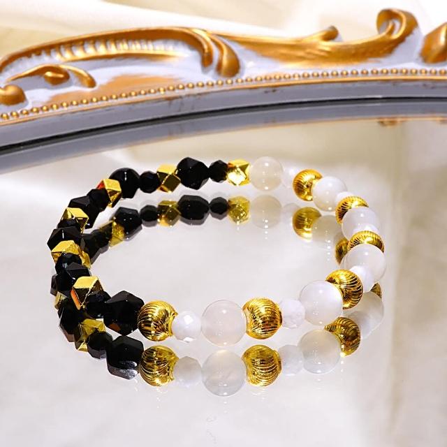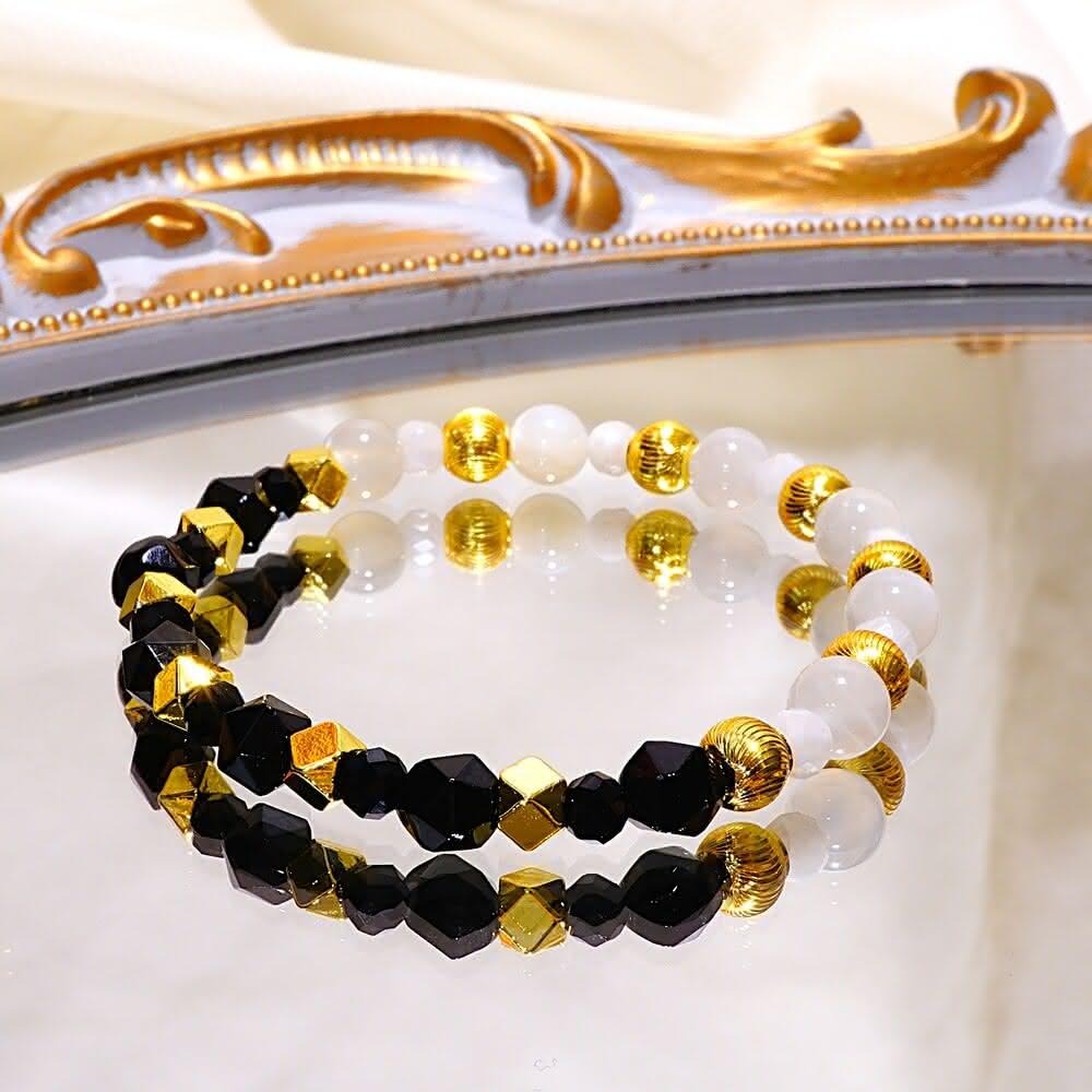 Miss命運之鑰/白月光 黑瑪瑙 黑尖晶/天然水晶手鍊/照亮前行路途