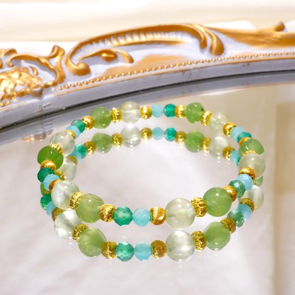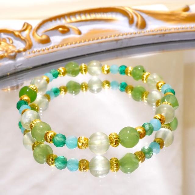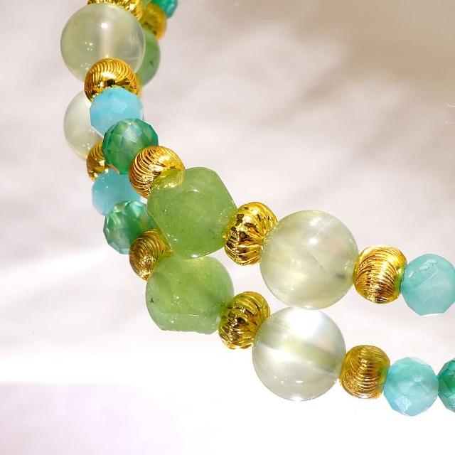 Miss阿爾卑斯山的風/葡萄石 東陵玉 天河石 綠瑪瑙/天然水晶手鍊/壯麗的天地融合