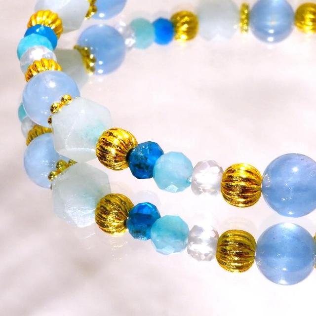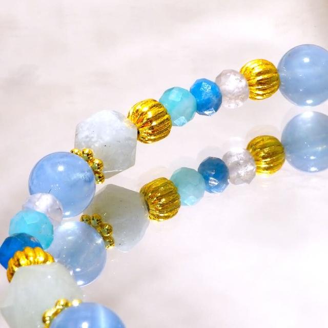 Miss遊輪假期/海藍寶 天河石 白水晶 藍磷灰/天然水晶手鍊/一趟豐富之旅