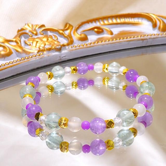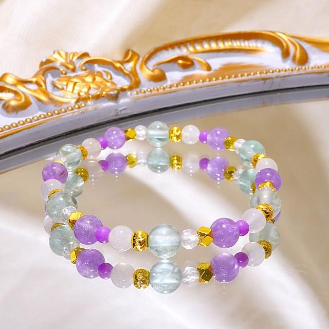 Miss記憶中的馬卡龍/薰衣草紫水晶 綠螢石 紫雲母 白月光 白水晶/天然水晶手鍊/無憂的時光