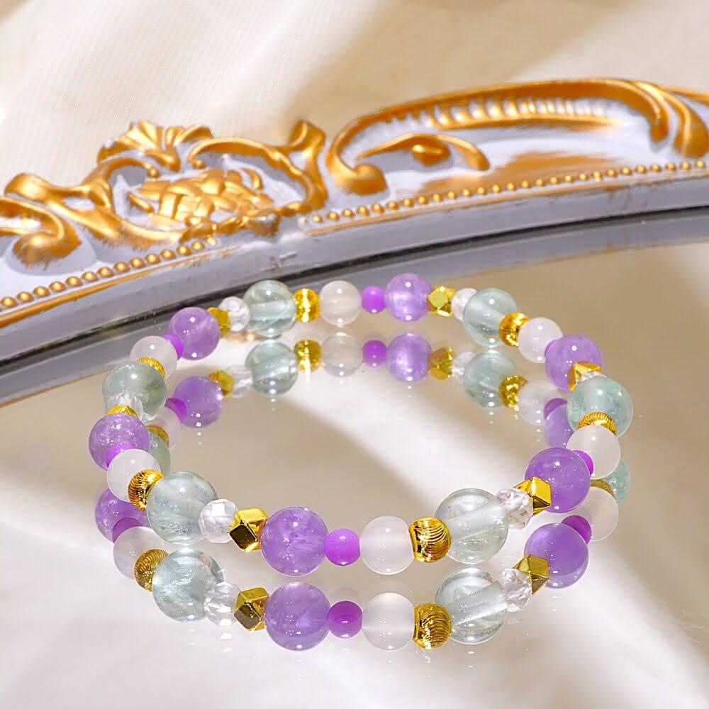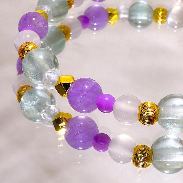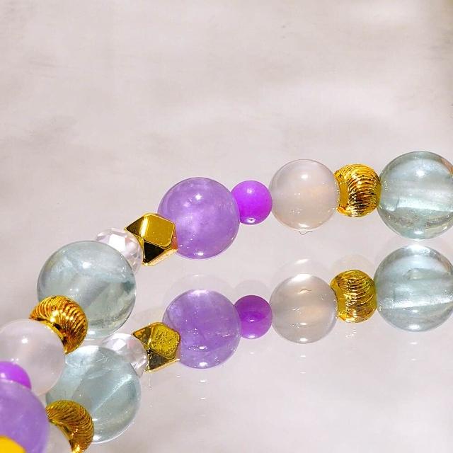 Miss記憶中的馬卡龍/薰衣草紫水晶 綠螢石 紫雲母 白月光 白水晶/天然水晶手鍊/無憂的時光
