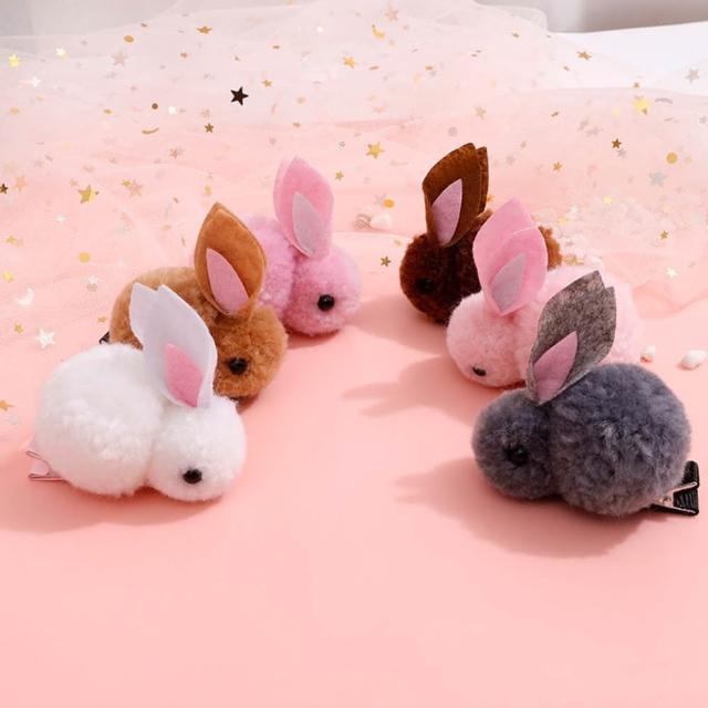 可愛立體小兔子髮夾 1入 (毛絨髮夾 / 兔髮夾)