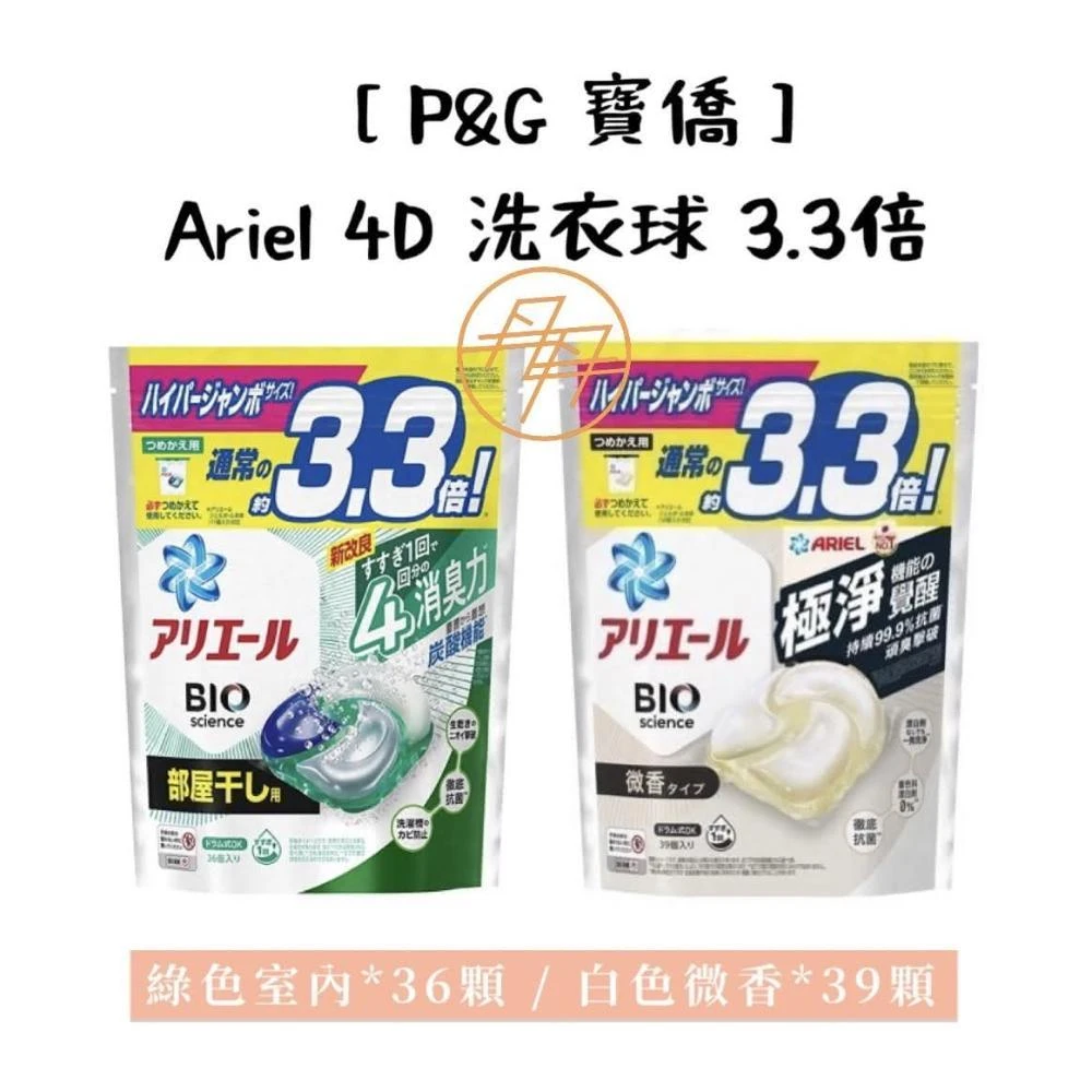 P&GAriel 4D 洗衣球 (藍色淨白/綠色室內/白色微香;洗衣膠球)
