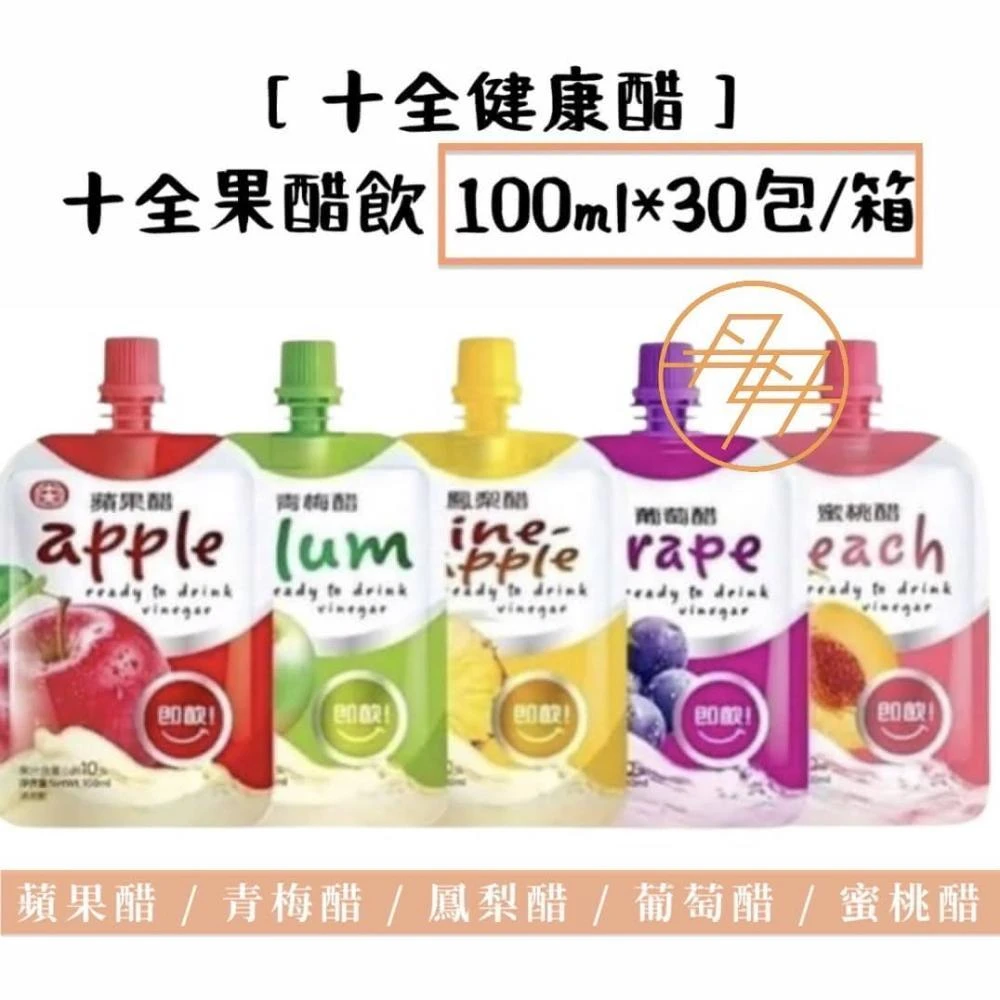 十全健康醋果醋飲 100ml*30包 (箱購;蘋果醋/青梅醋/蔓越莓醋/蜜桃醋/葡萄醋/鳳梨醋)