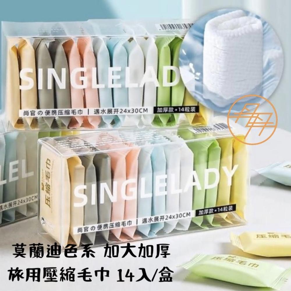 莫蘭迪色系加大加厚旅用壓縮毛巾 14入/盒 (免洗毛巾 / 拋棄式毛巾)