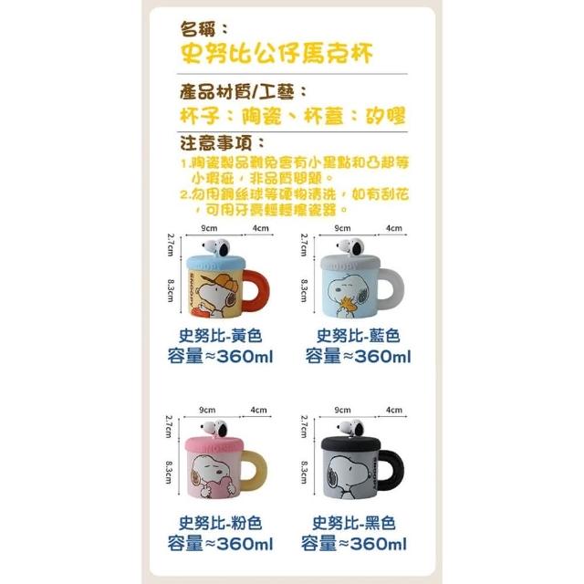 SNOOPY 史努比公仔杯蓋陶瓷馬克杯 360ml (造型馬克杯 / 咖啡杯 / 陶瓷杯 / 牛奶杯 / 馬克杯)