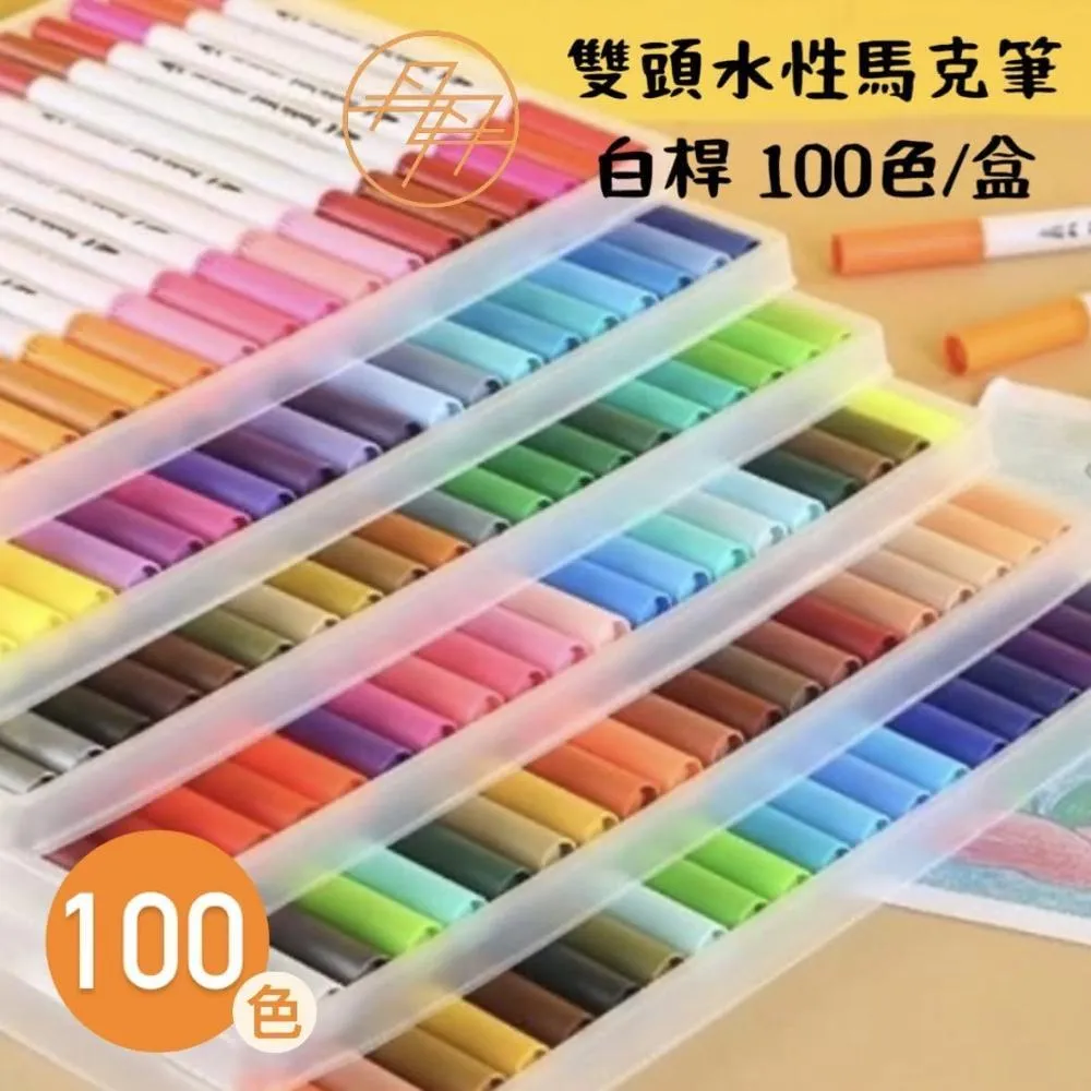 雙頭水性馬克筆 白桿100色/盒(繪畫筆/重點筆/可水洗軟頭水彩筆)