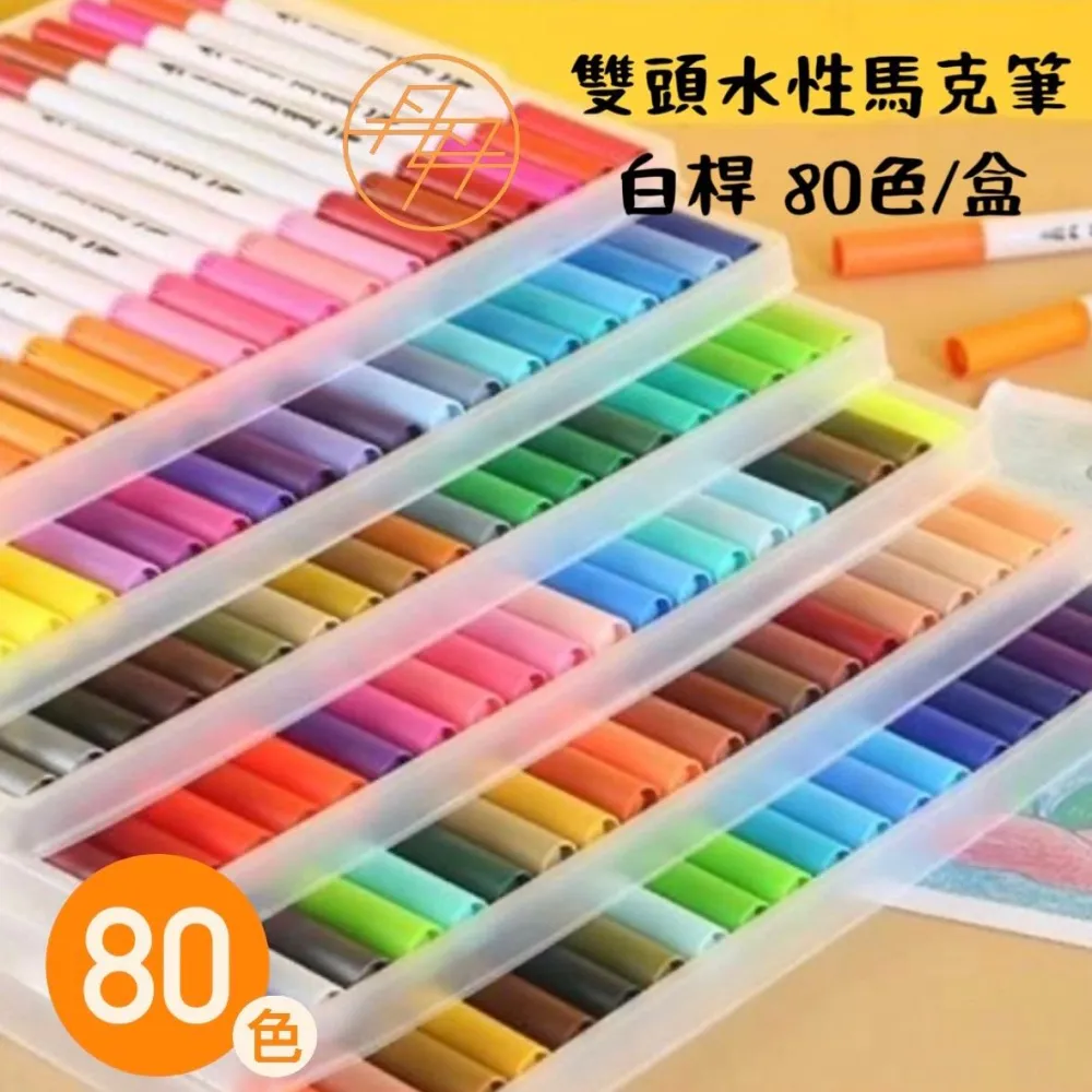雙頭水性馬克筆 白桿 80色/盒 (繪畫筆 / 可水洗軟頭水彩筆)